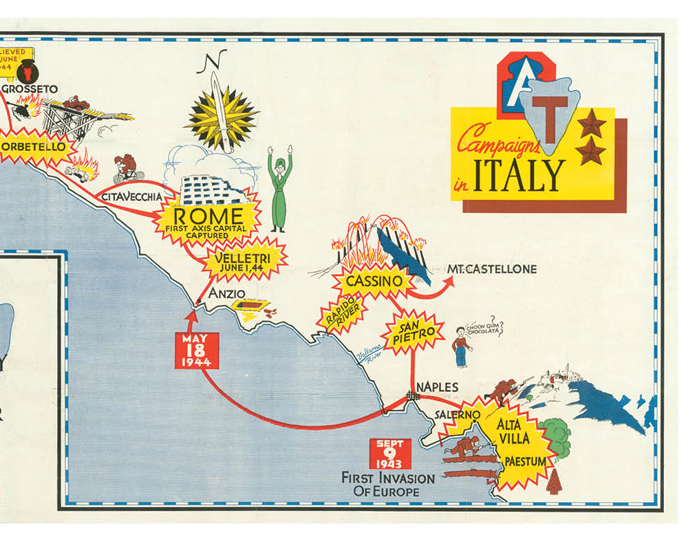 The 36th first saw action, 9 September 1943, when it landed at Paestum on the Gulf of Salerno. The division fought in the Naples-Foggia, Rome-Arno, Southern France, Rhineland, and Central Europe campaigns.