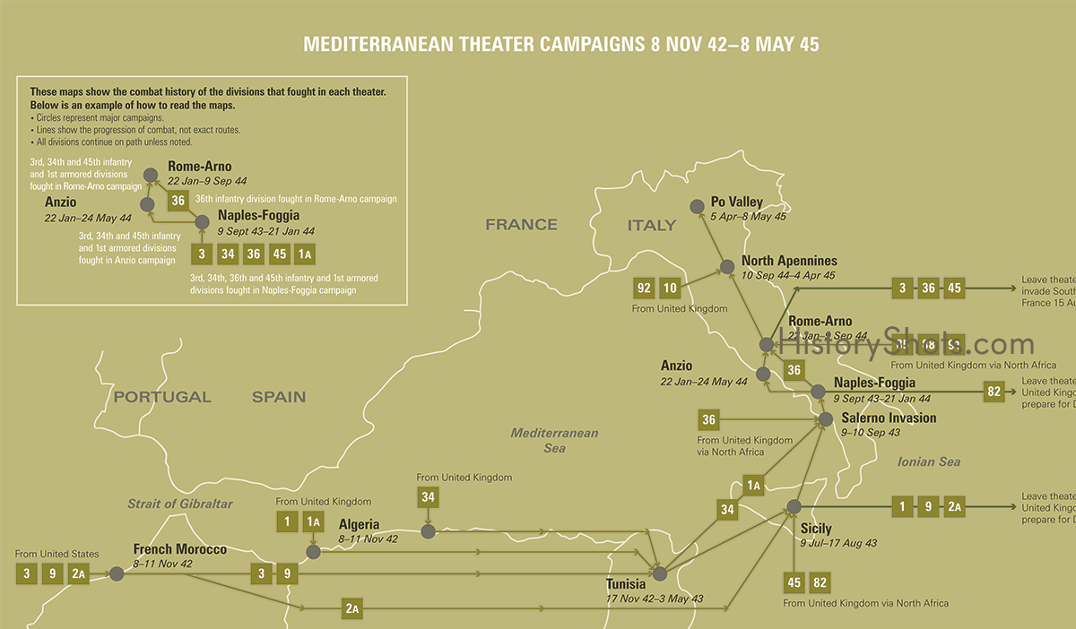Detailed maps of each theater show divisional campaign histories and provide a unique perspective of the size and flow of the entire war. This print is dedicated to the men and women who have served and are serving with the U.S. Army.