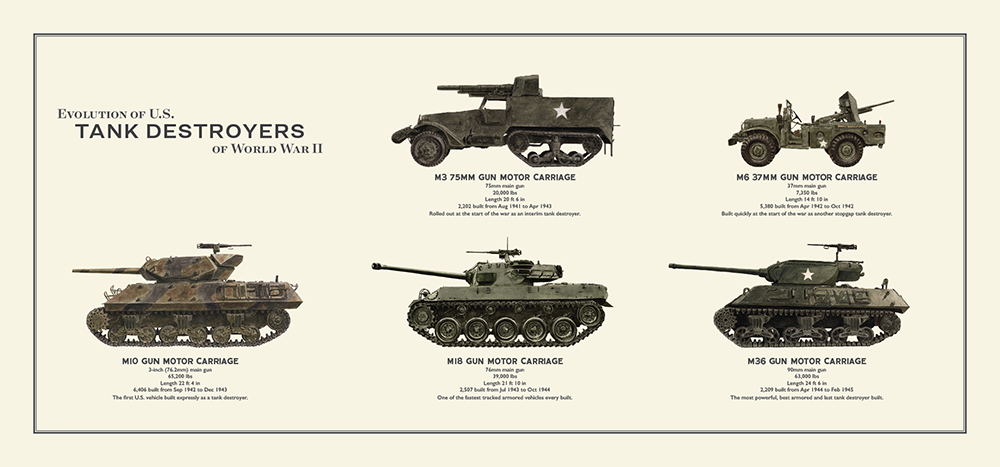 Rather than fighting enemy tanks with tanks of its own, the US Army concluded that a specialized vehicle would be more effective and economical. The resulting “tank destroyers” were faster than traditional tanks, with better visibility and less armor.